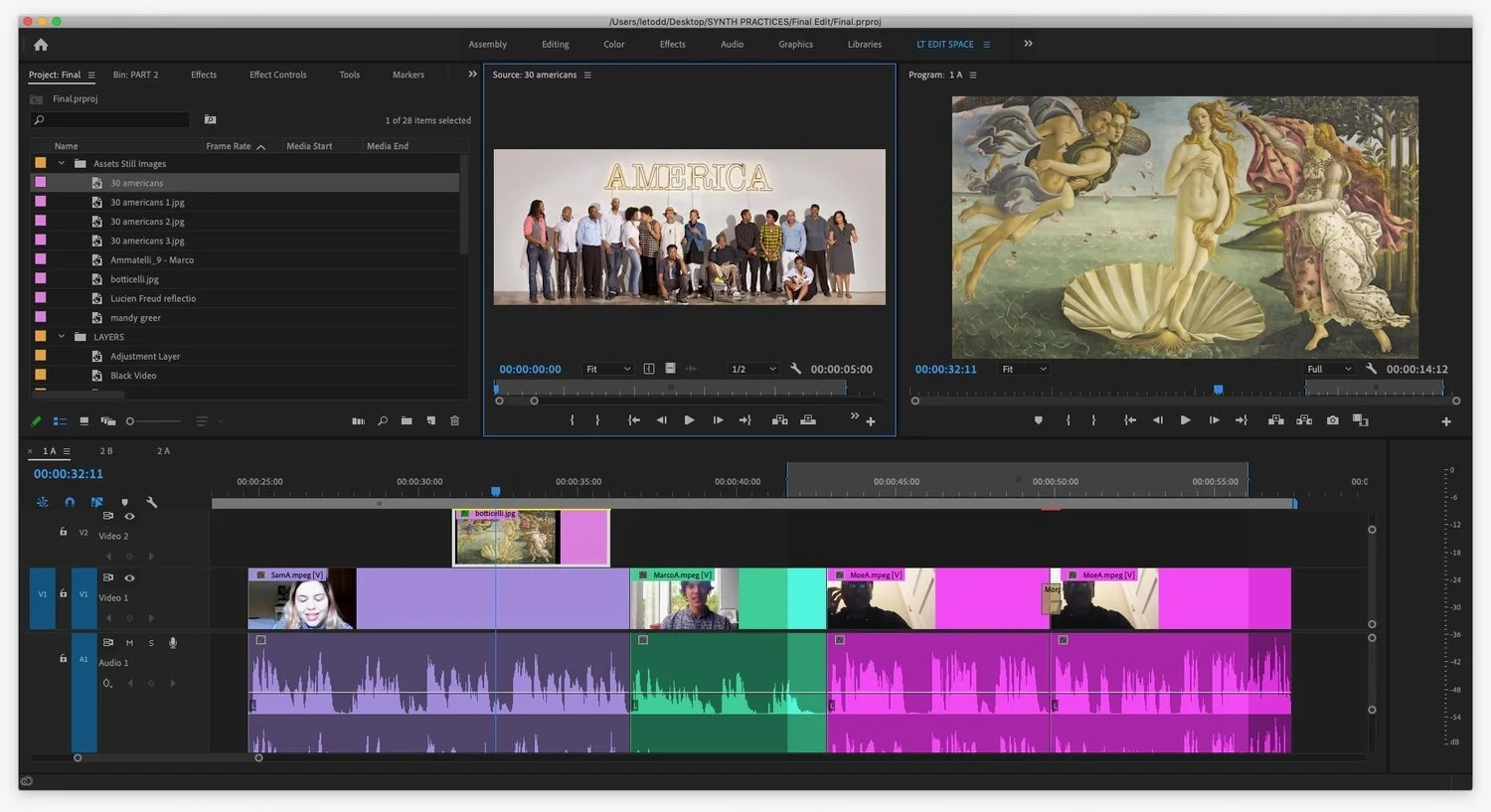 Synthesizing Practices, June 2020. Screenshot, video edit timeline.